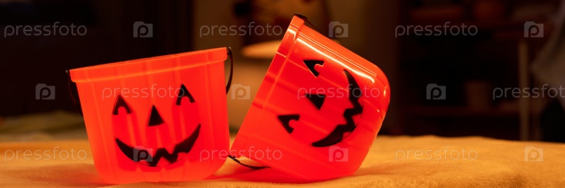 Два апельсиновых ведра для лакомств на Хэллоуин