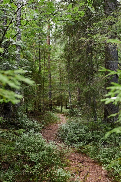 Пешеходная тропа в зеленом лесу W