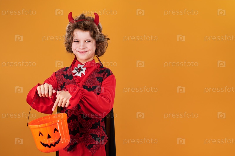 Счастливый молодой вампир просит сладостей