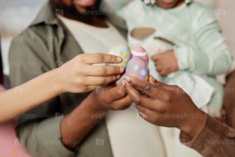 Обмен цветными пасхальными яйцами во время празднования