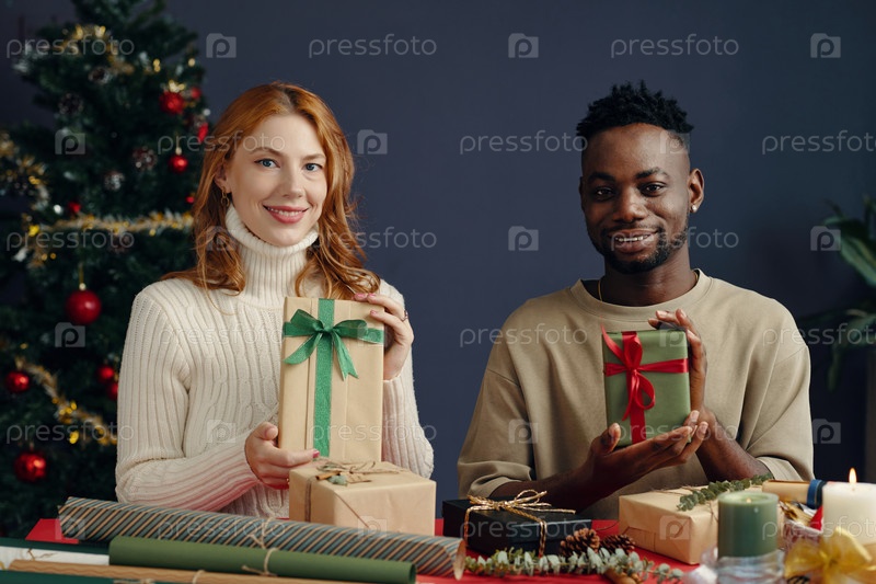 Празднование праздничного сезона с подарками и украшениями