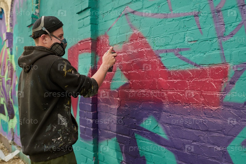 Парень создает новый шедевр граффити