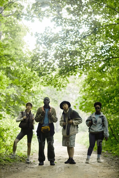 Разнообразная группа друзей в поход