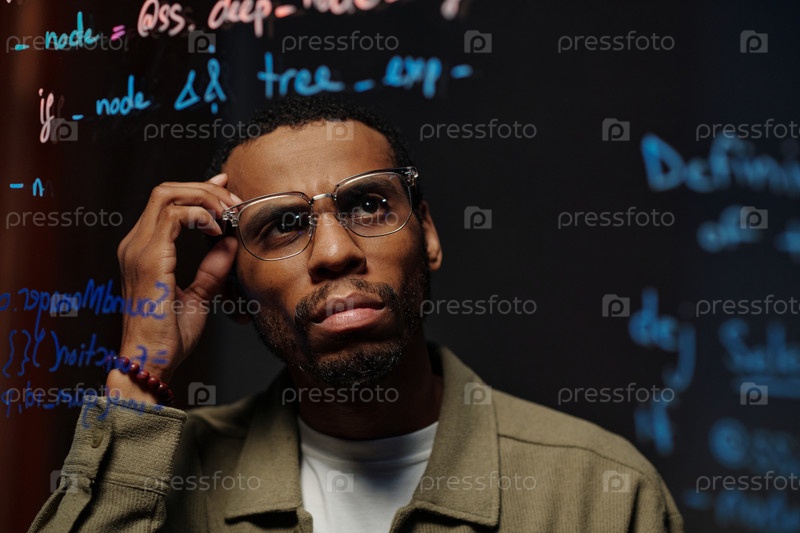 Вдумчивый человек анализирует данные на прозрачной доске