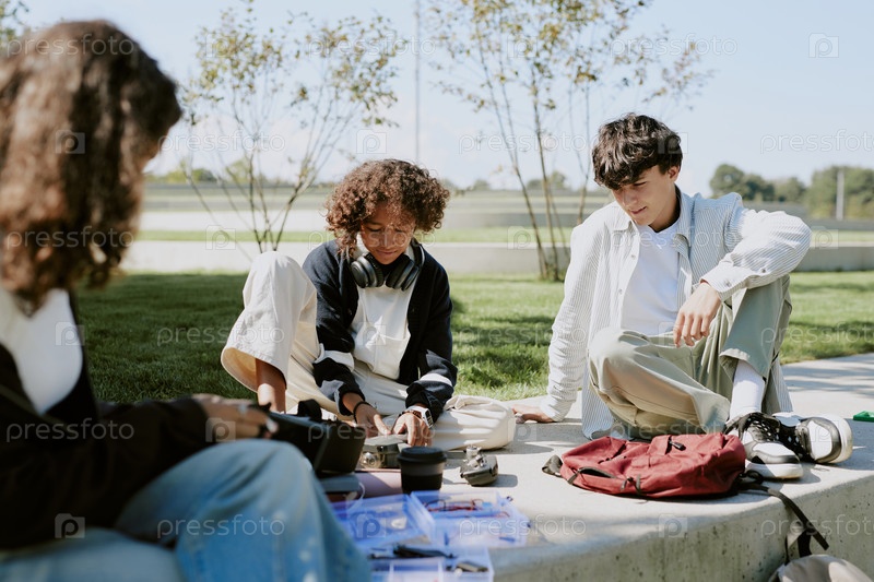 Школьные друзья веселятся с дронами