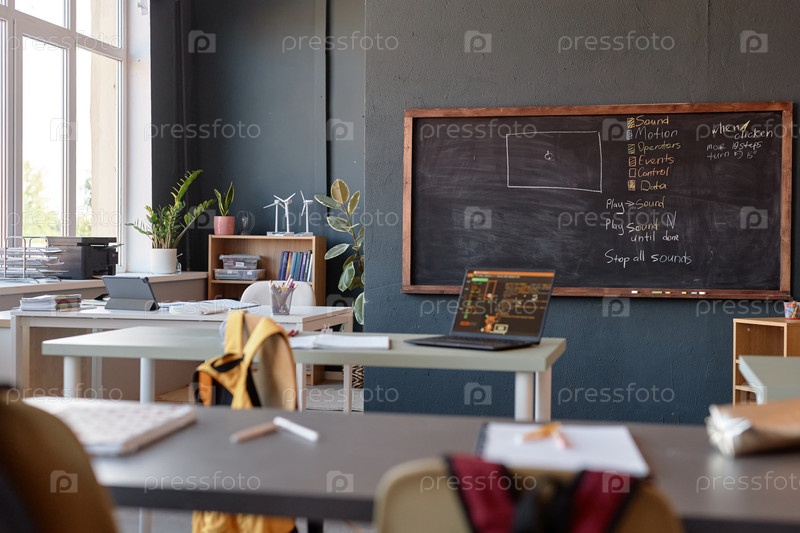 Класс с ИТ-уроком на Blackboard Laptop на рабочем столе