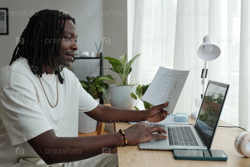 Работа на ноутбуке в современном домашнем рабочем пространстве