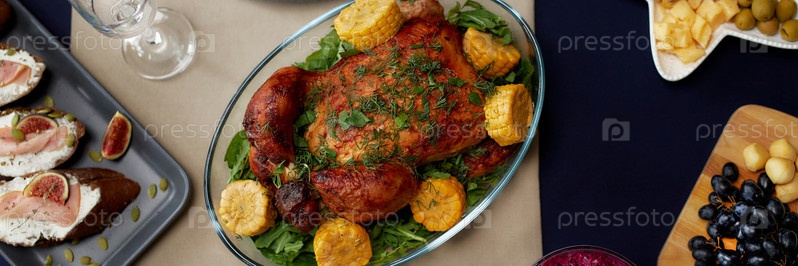 Header Image of Жаренная индейка с овощами, подаваемая на стол к рождественскому ужину
