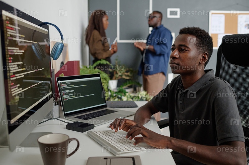 Программист на работе в современном офисе
