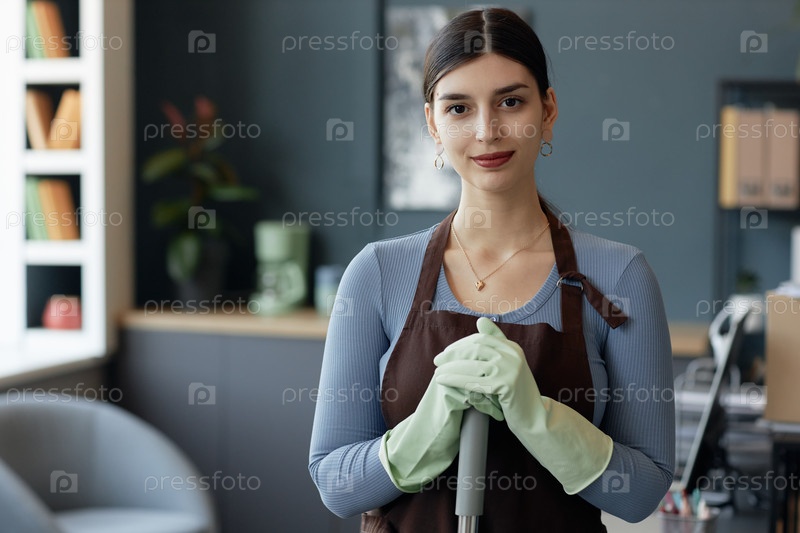 Девушка, занимающаяся уборкой в униформе