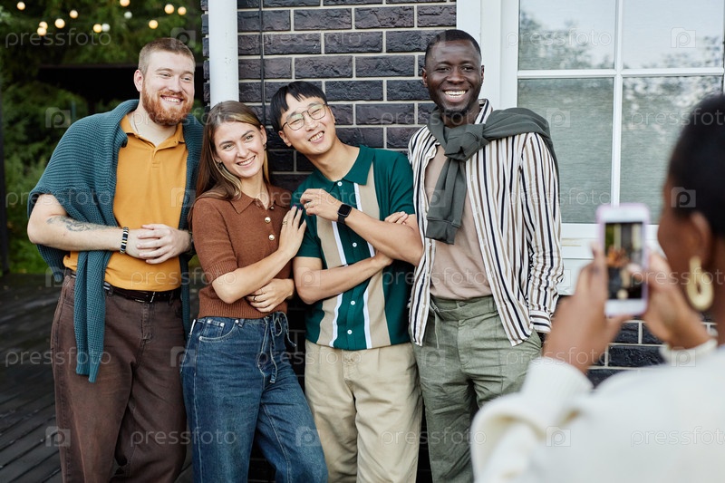 Различные люди позируют для фотографий на открытом воздухе