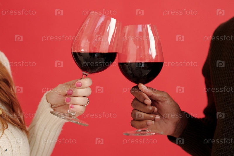 Празднование со стаканами красного вина в руках
