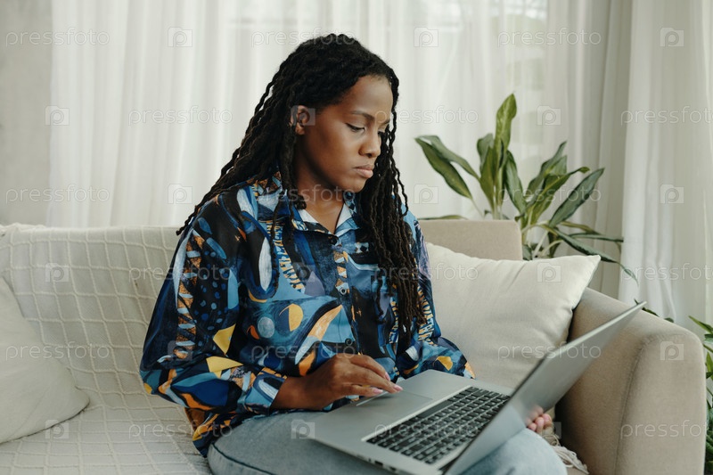 Фокусированный профессионал, работающий на ноутбуке дома