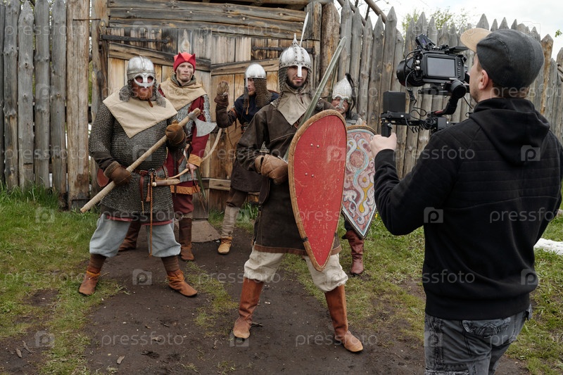 Съемки реконструкции средневековых воинов в доспехах