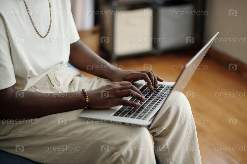 Молодой человек печатает на ноутбуке в комфортной обстановке
