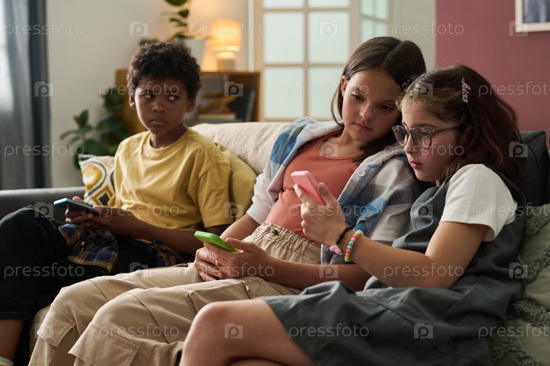 Исследование мобильных игр группой детей на диване