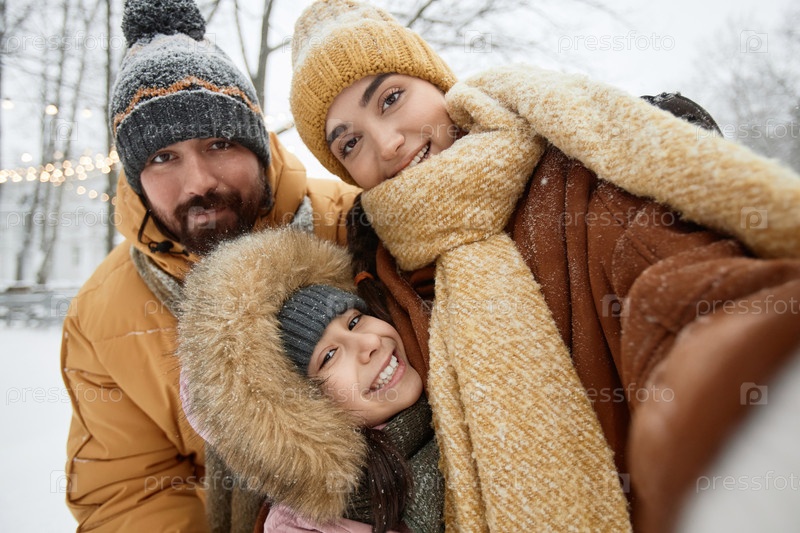 Счастливая семья делает селфи POV
