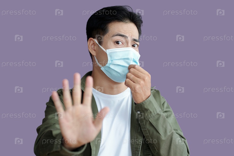 Мужчина в маске показывает негативный жест