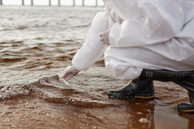 Ученый в Hazmat Suit принимает водный зонд
