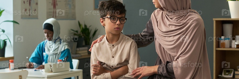 Заботливый мусульманский учитель утешает молодого студента в классе