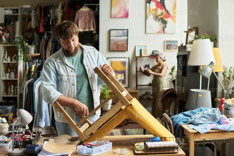 Фиксация винтов на стуле с помощью отвертки