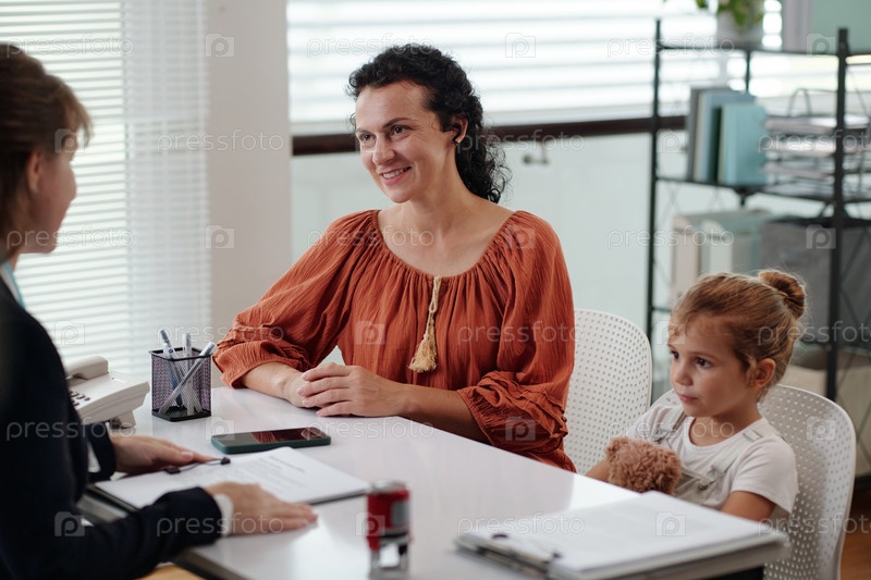 Молодая мать проходит консультацию с социальным работником