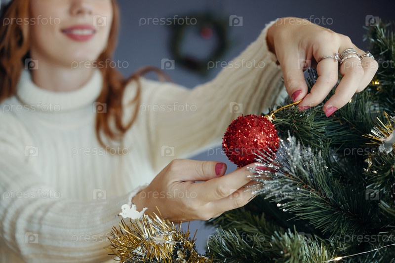 Украшение рождественской елки красным орнаментом