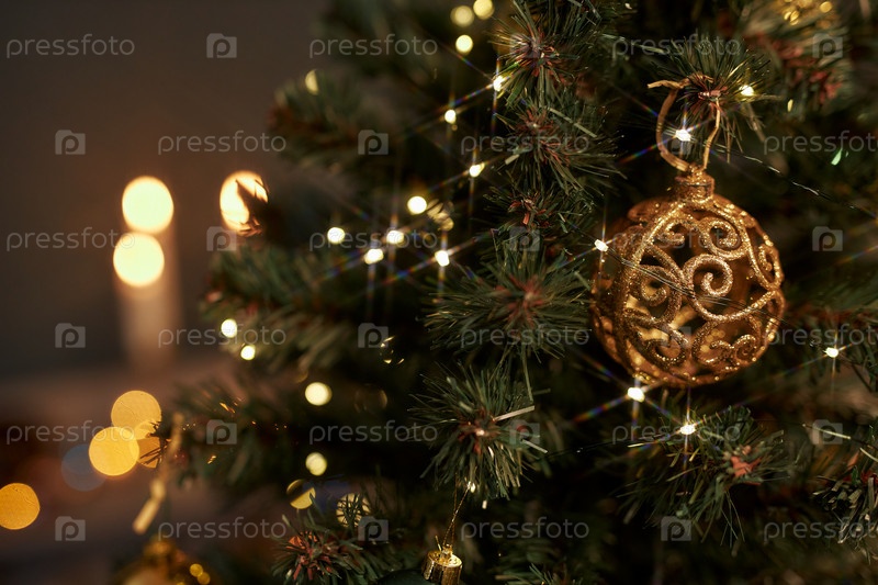 Вырезанное золотое украшение на рождественской елке