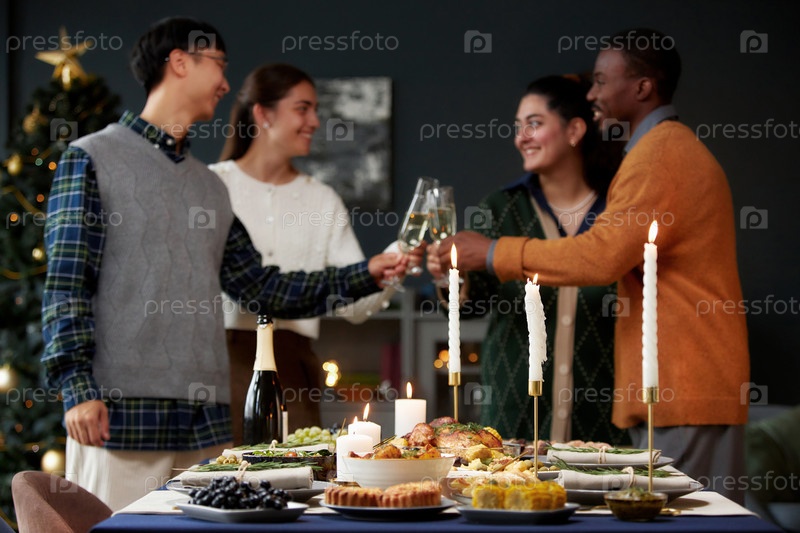 Праздничные блюда и свечи, установленные на обеденном столе для рождественского ужина