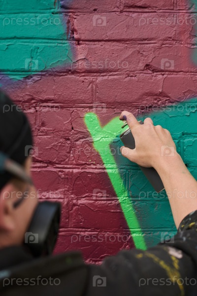 Парень, работающий над шедевром граффити