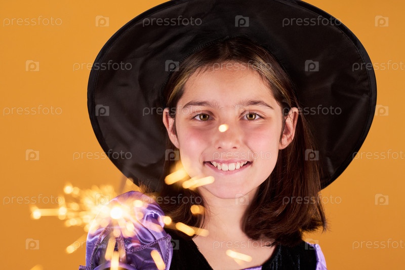 Лицо девушки в костюме ведьмы на Хэллоуин