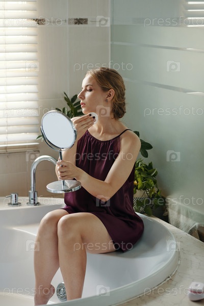 Женщина, готовящаяся к событию, сидит на краю ванны