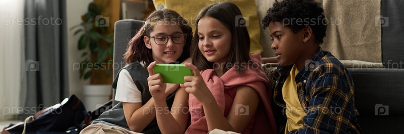 Дети наслаждаются просмотром видео на зеленом экране смартфона