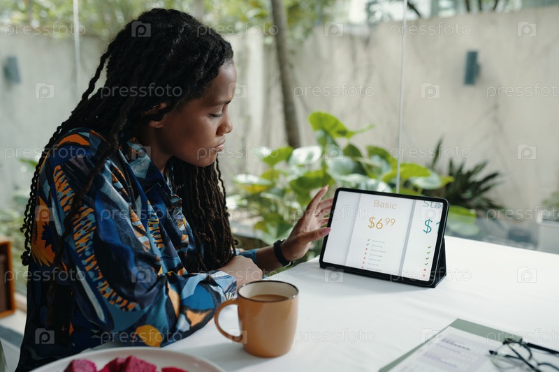 Концентрированная женщина, занимающаяся цифровым планшетом