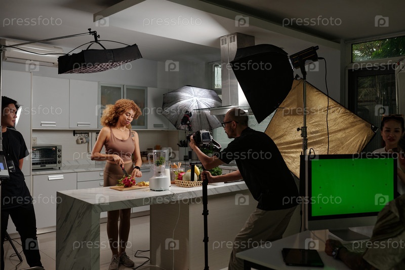 Команда операторов, снимающих контент в студии