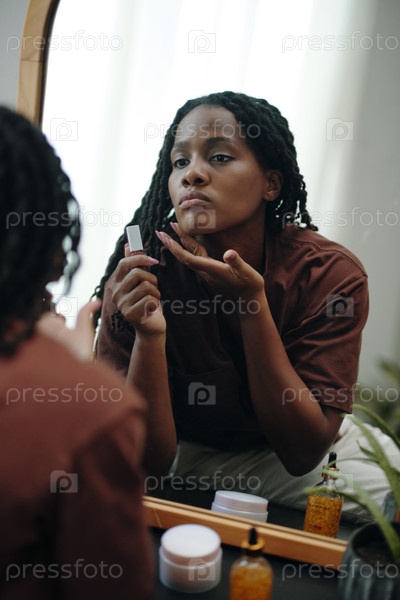 Применение продукта по уходу за кожей перед зеркалом