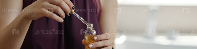 Сброс сыворотки в маленькую бутылку при мягком освещении