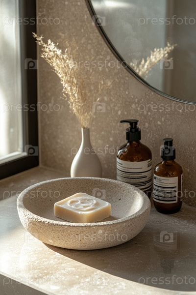 Элегантное украшение ванной раковины с мылом и вазами