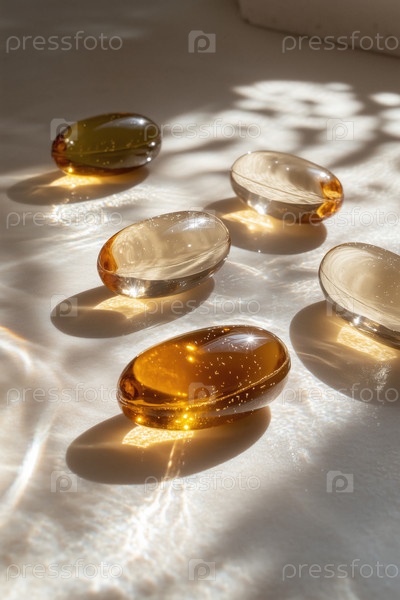 Светящиеся прозрачные камни на белой поверхности