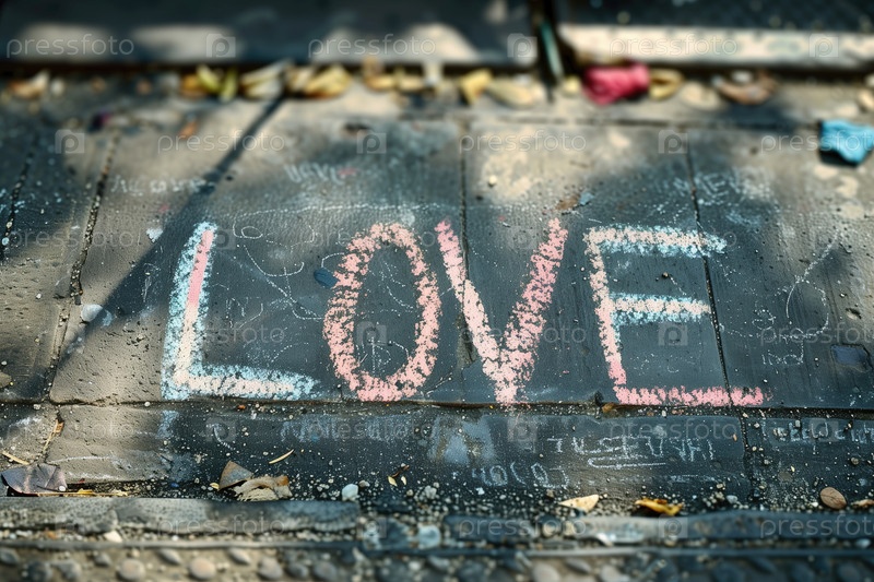 Красочный чертеж из мела слова 'любовь' на тротуаре