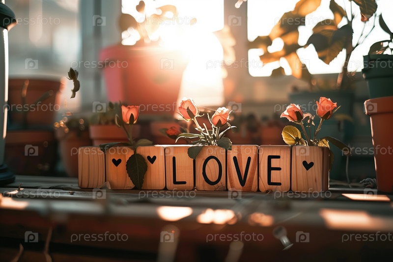 Оранжевые розы освещают декор деревянных блоков