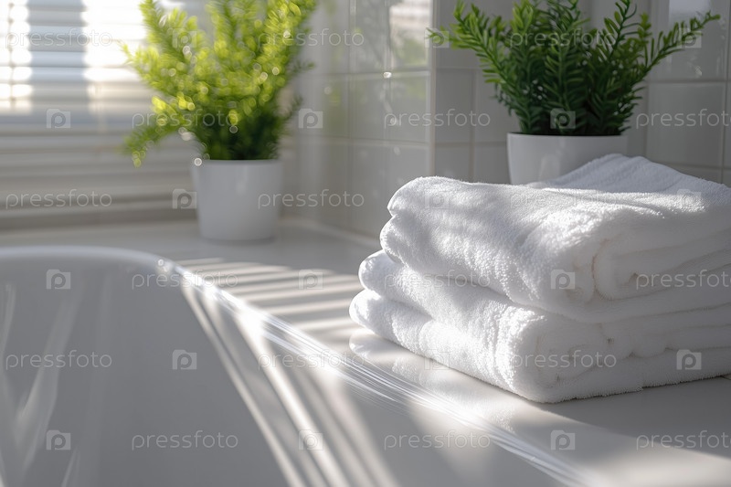 Солнечный интерьер ванной комнаты с хрустящими белыми полотенцами