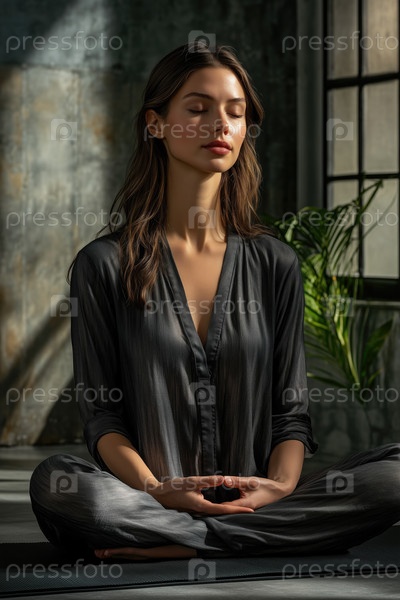 Практика медитации в солнечном лофте с тенью растений