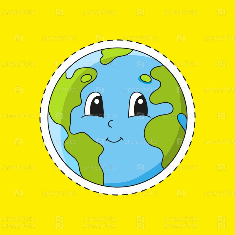 Наклейка с контуром земли. мультипликационный персонаж. Красочная векторная иллюстрация. Изолированная на цветном фоне. Шаблон для вашего дизайна