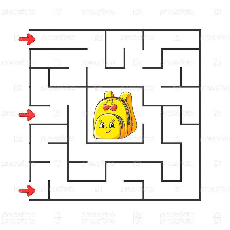 Квадратный лабиринт. Игра для детей. Головоломка для детей. Персонаж мультфильма. Загадка лабиринта. Цветная векторная иллюстрация. Найди правильный путь. Развитие логического и пространственного мышления