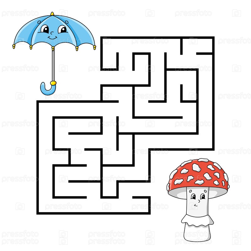 Квадратный лабиринт. Игра для детей. Головоломка для детей. Загадка лабиринта. Персонаж мультфильма. Изолирован на белом фоне. Векторная иллюстрация