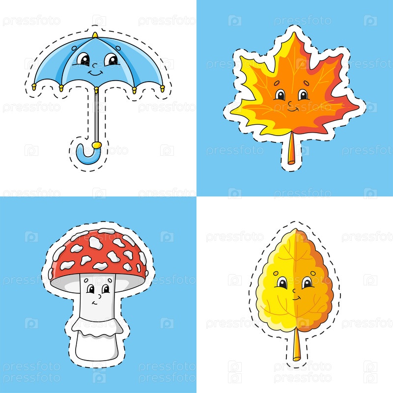 Наклейка с контуром. Персонаж мультфильма. Красочные векторные иллюстрации. Изолированный на цветном фоне. Шаблон для вашего дизайна