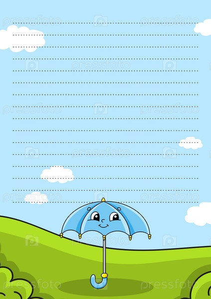 Шаблон цветного листа для заметок. Бумажная страница для журнала, блокнота, дневника, писем, расписания, органайзера. Милый персонаж мультфильма. Линованный лист. Векторная иллюстрация