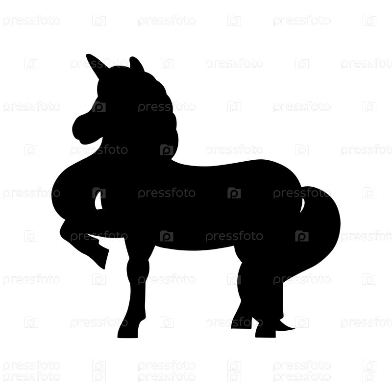 Волшебный фея единорог. Милая лошадь. Черный силуэт. Элемент дизайна. Векторная иллюстрация, изолированная на белом фоне. Шаблон для книг, наклеек, плакатов, открыток, одежды