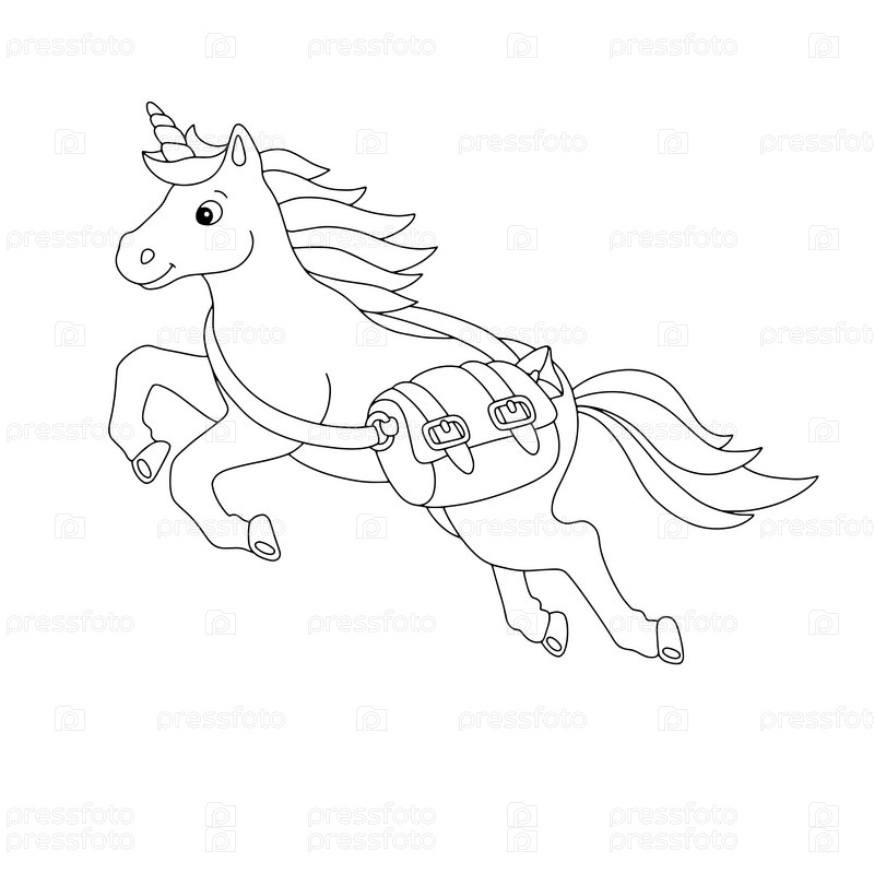 Милый единорог почтальон. Страница раскраски для детей. Персонаж в мультяшном стиле. Векторная иллюстрация на белом фоне